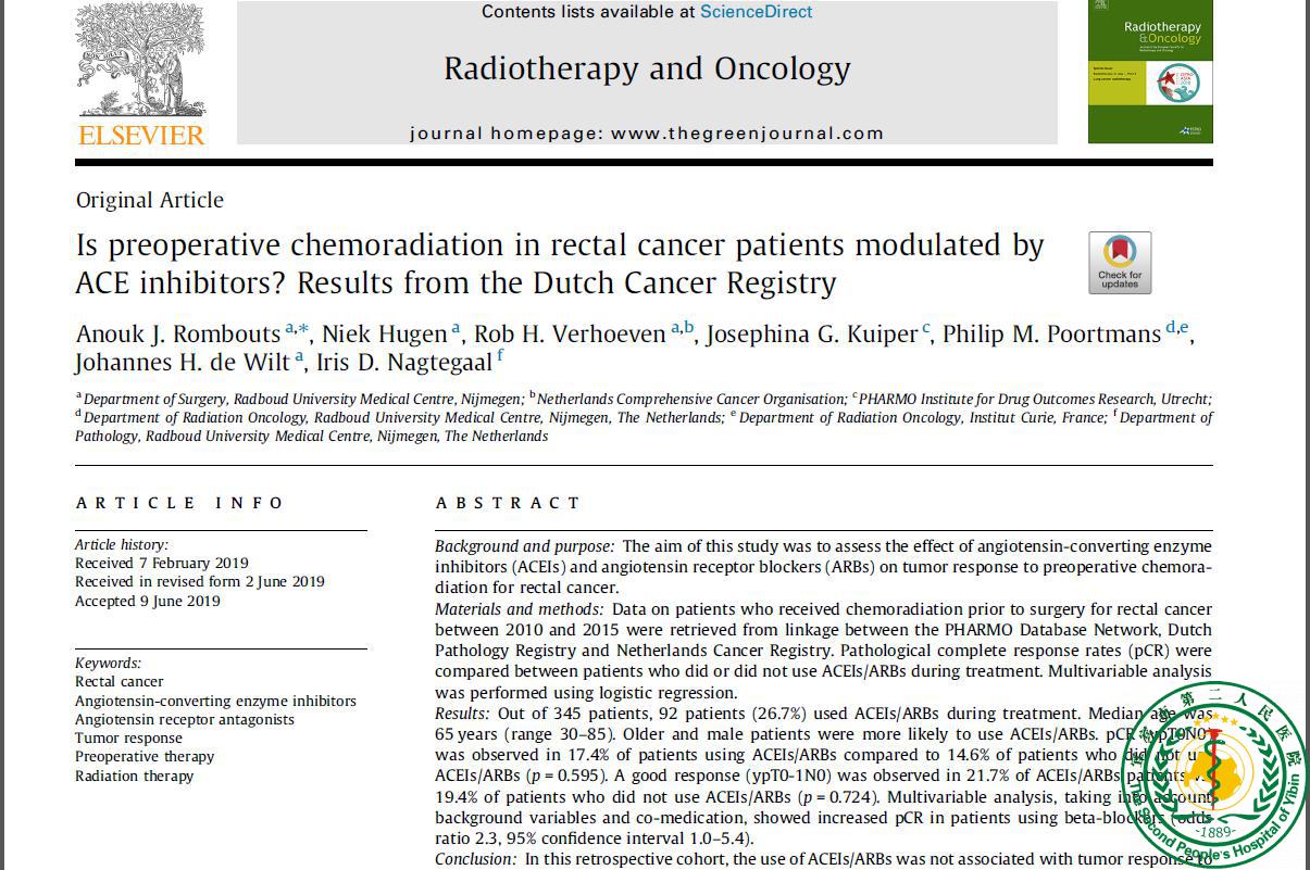 Is preoperative chemoradiation in rectal cancer patients modulated by ACE inhibitors? Results from the Dutch Cancer Registry22110