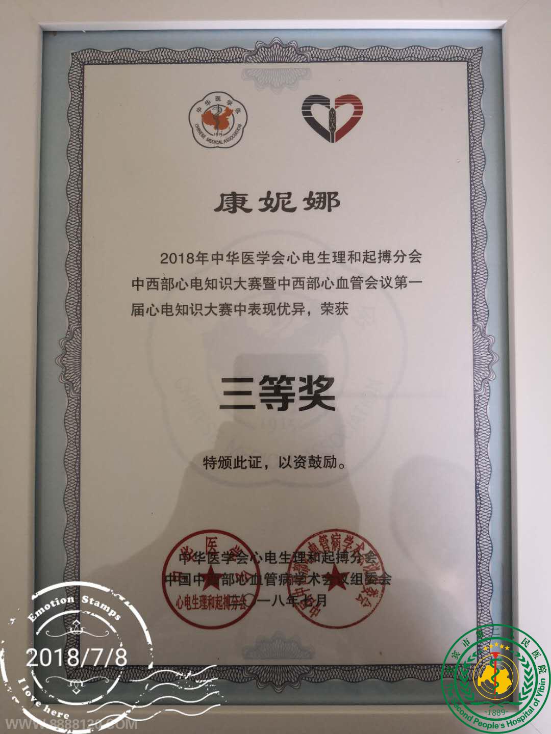 心内三科李健等三位医生在中西部心电大赛中获三等奖