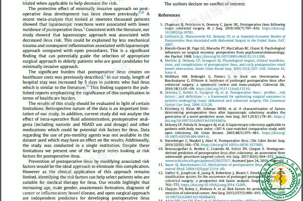 Predictors of ileus following colorectal resections
