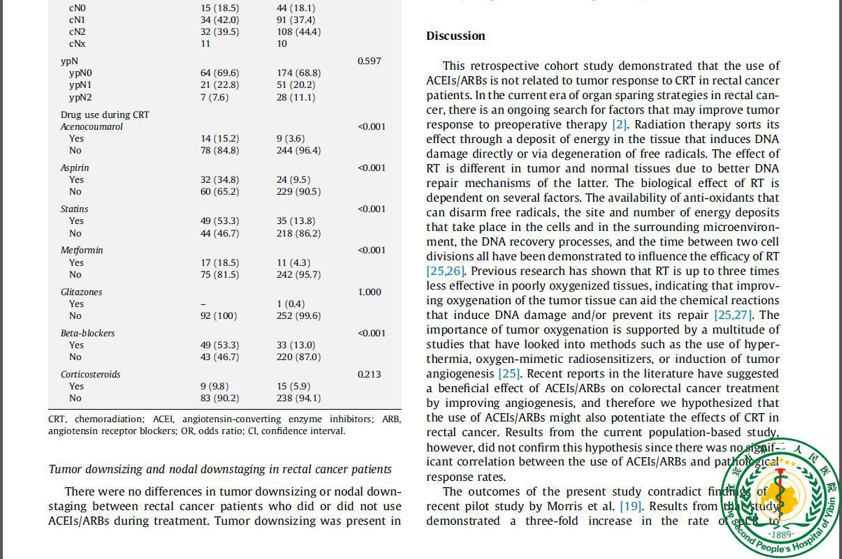 Is preoperative chemoradiation in rectal cancer patients modulated by ACE inhibitors? Results from the Dutch Cancer Registry22111