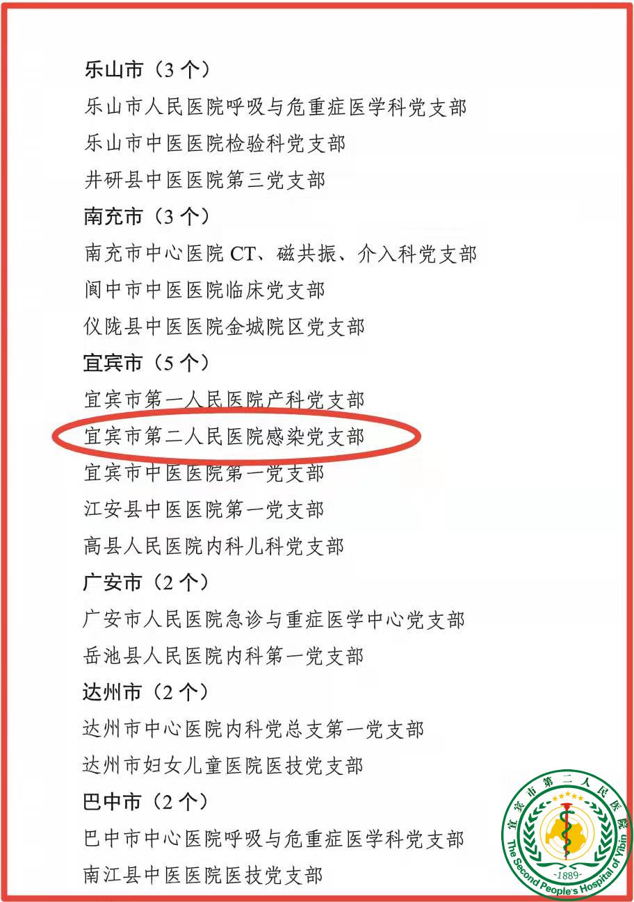 喜报——宜宾市第二人民医院感染党支部被评为2021年度四川省公立医院“标杆党支部”