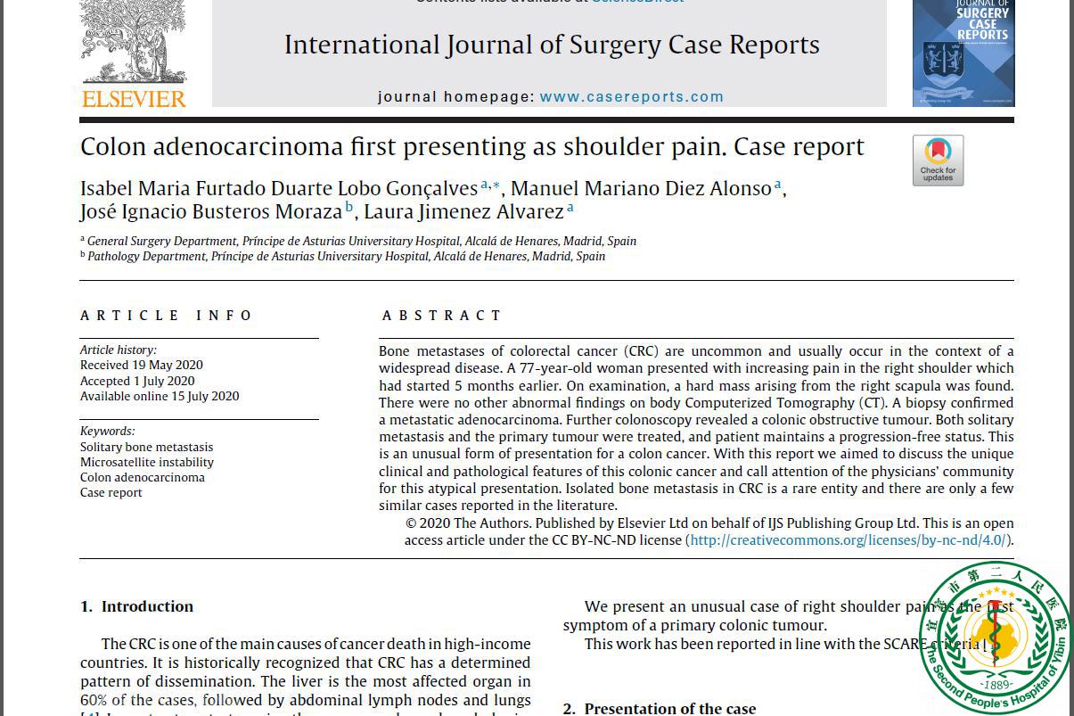 Colon adenocarcinoma first presenting as shoulder pain. Case report29832