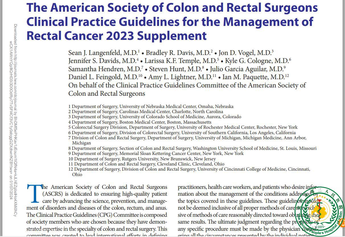 The American Society of Colon and Rectal Surgeons Clinical Practice Guidelines for the Management of Rectal Cancer 2023 Supplement