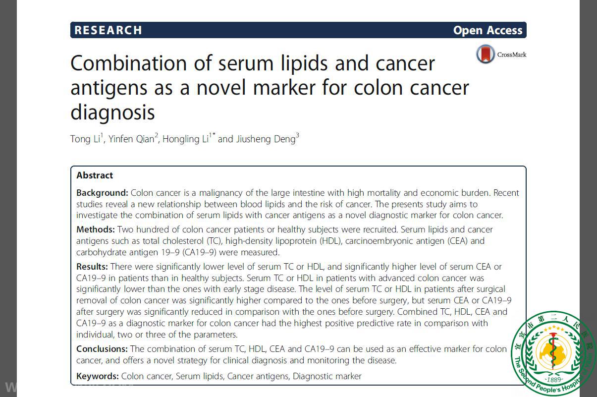 Combination of serum lipids and cancer antigens as a novel marker for colon cancer diagnosis19642