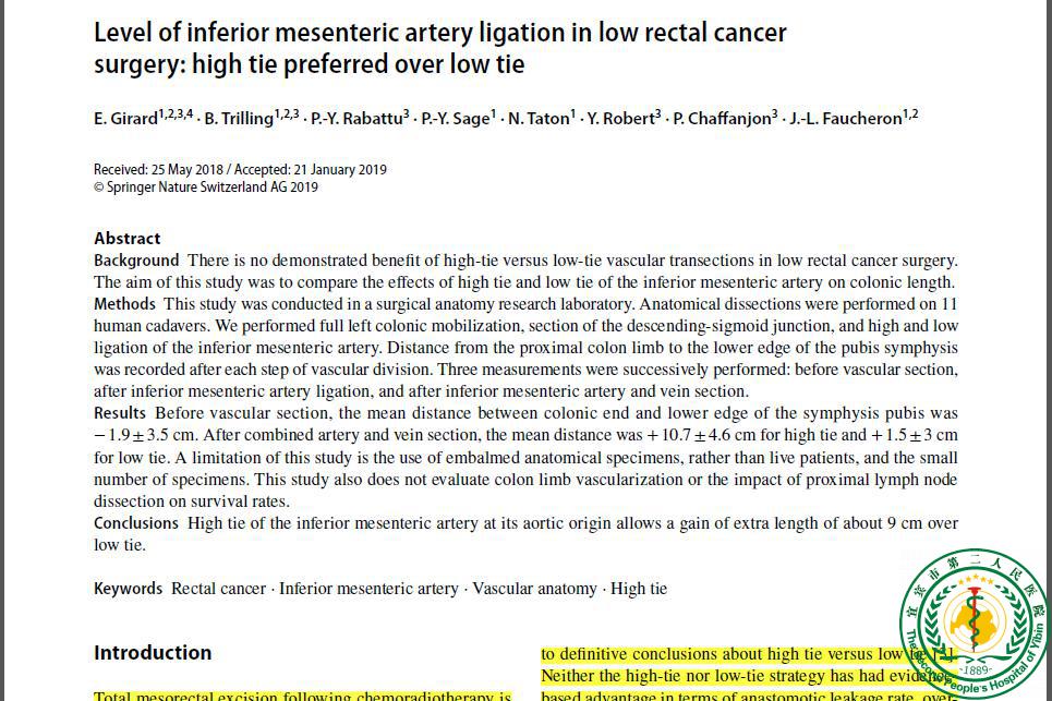 Level of inferior mesenteric artery ligation in low rectal cancer surgery: high tie preferred over low tie