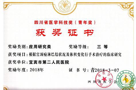 我院原南区门诊秦素主任和肿瘤二科袁志平主任荣获2018年度四川省医学科技奖