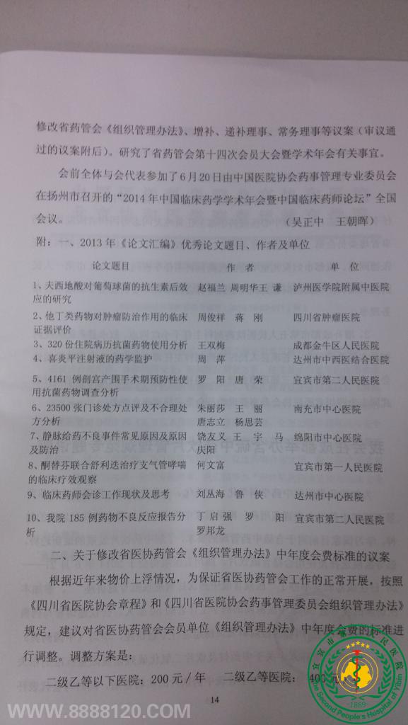我科两篇论文入选四川省医院协会药事管理委员会2013年《论文汇编》年度优秀论文