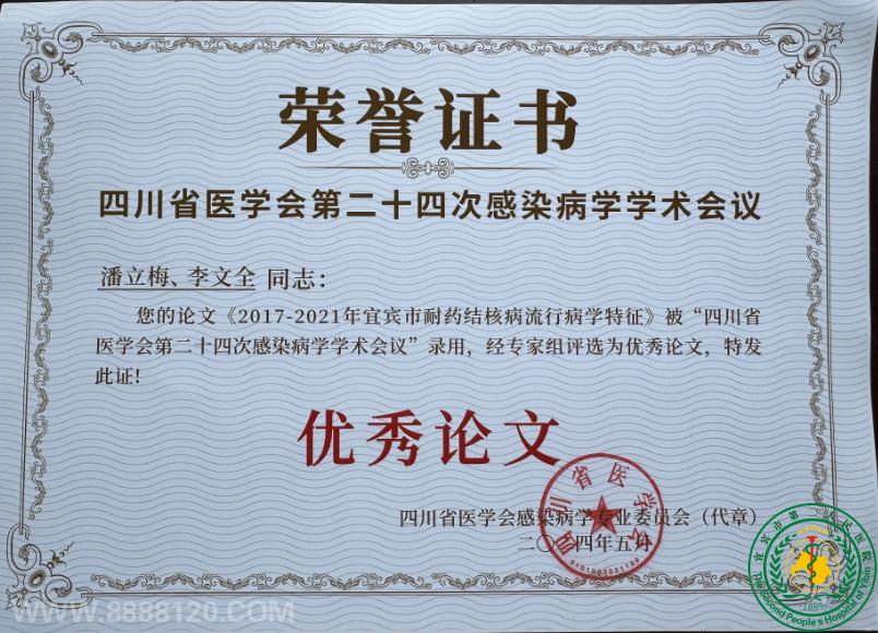 恭喜感染性疾病中心潘立梅获得四川省医学会第二十四次感染病学术年会优秀论文奖56115