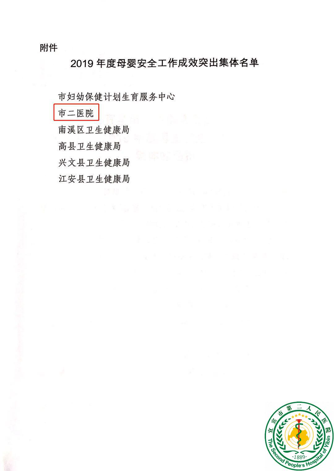 喜讯!宜宾市二医院被评为2019年度母婴安全工作成效突出集体27936