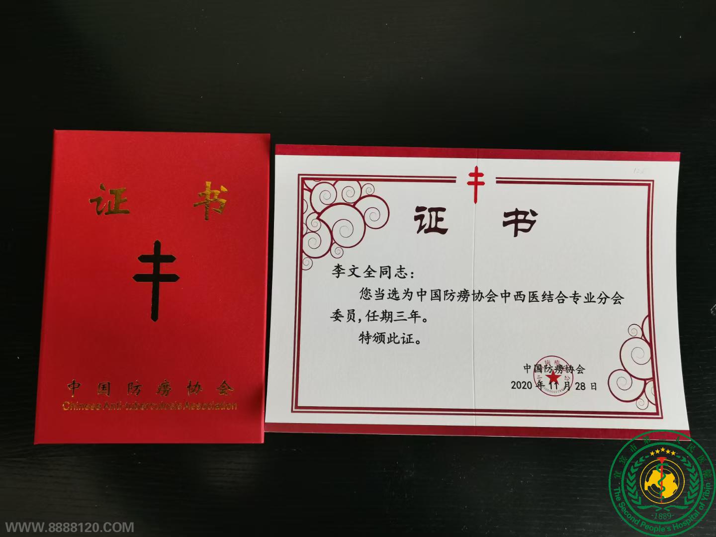 喜讯!李文全主任被当选中国防痨协会中西医结合专业分会委员