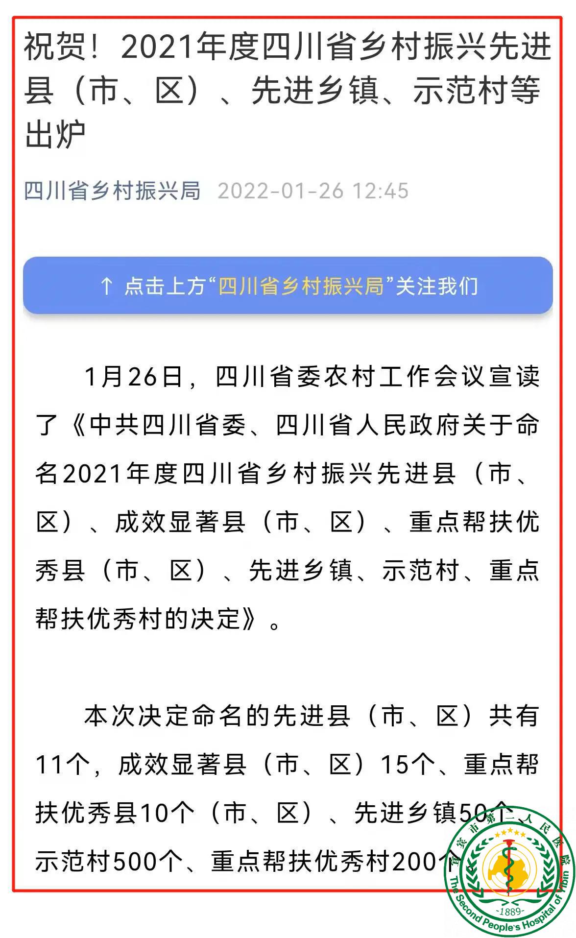乡村振兴 再传捷报——市二医院定点帮扶兴文县大河苗族乡落白亮村荣获2021年度四川省乡村振兴重点帮扶优秀村41847