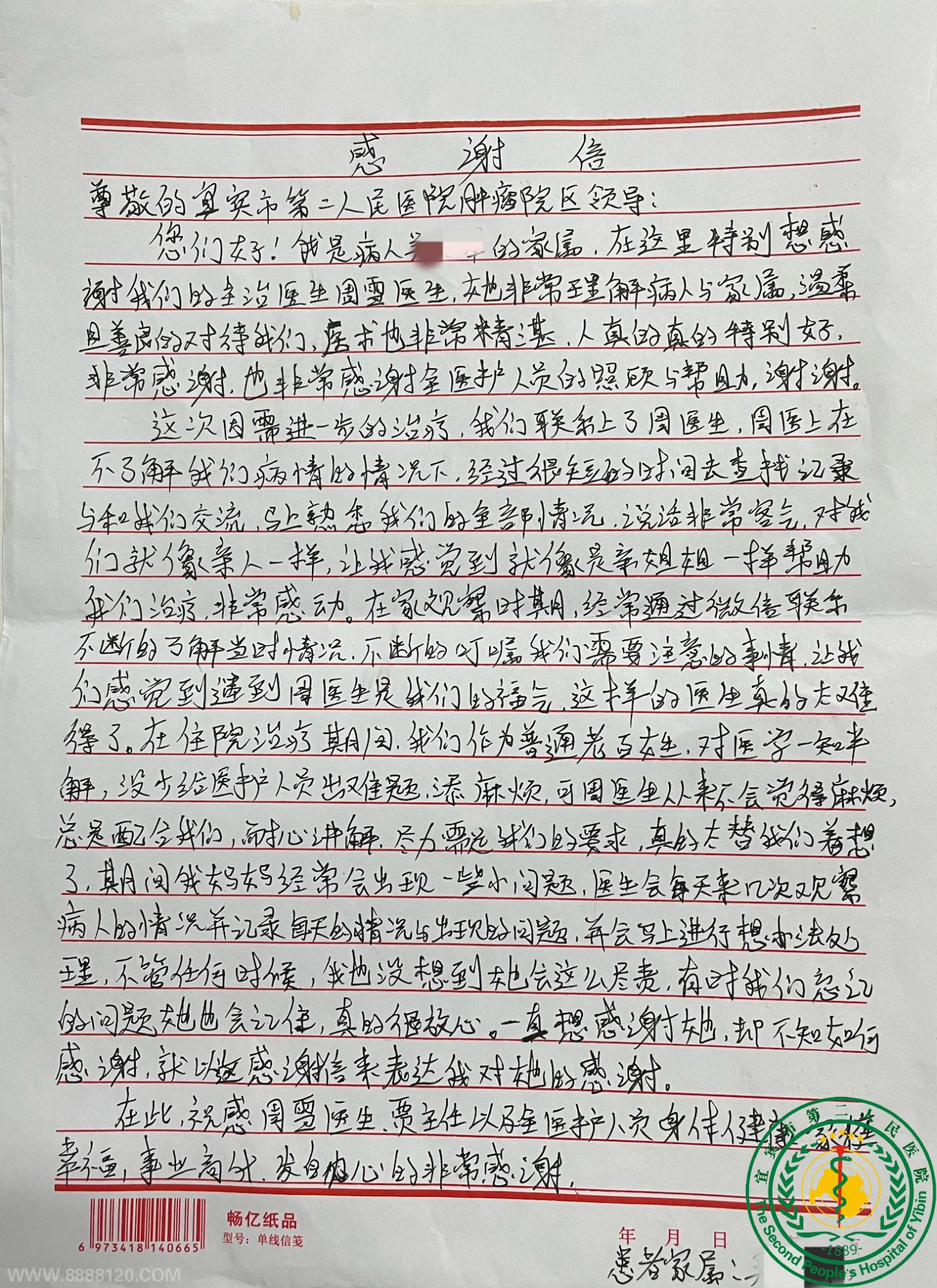 两封手写的感谢信