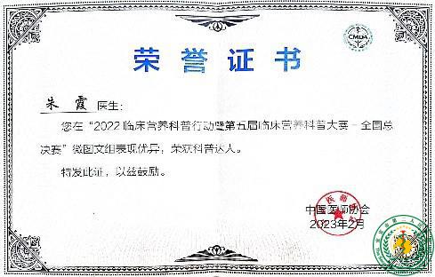 祝贺!我科三人在第五届临床营养科普大赛--全国总决赛中荣获科普达人称号48887