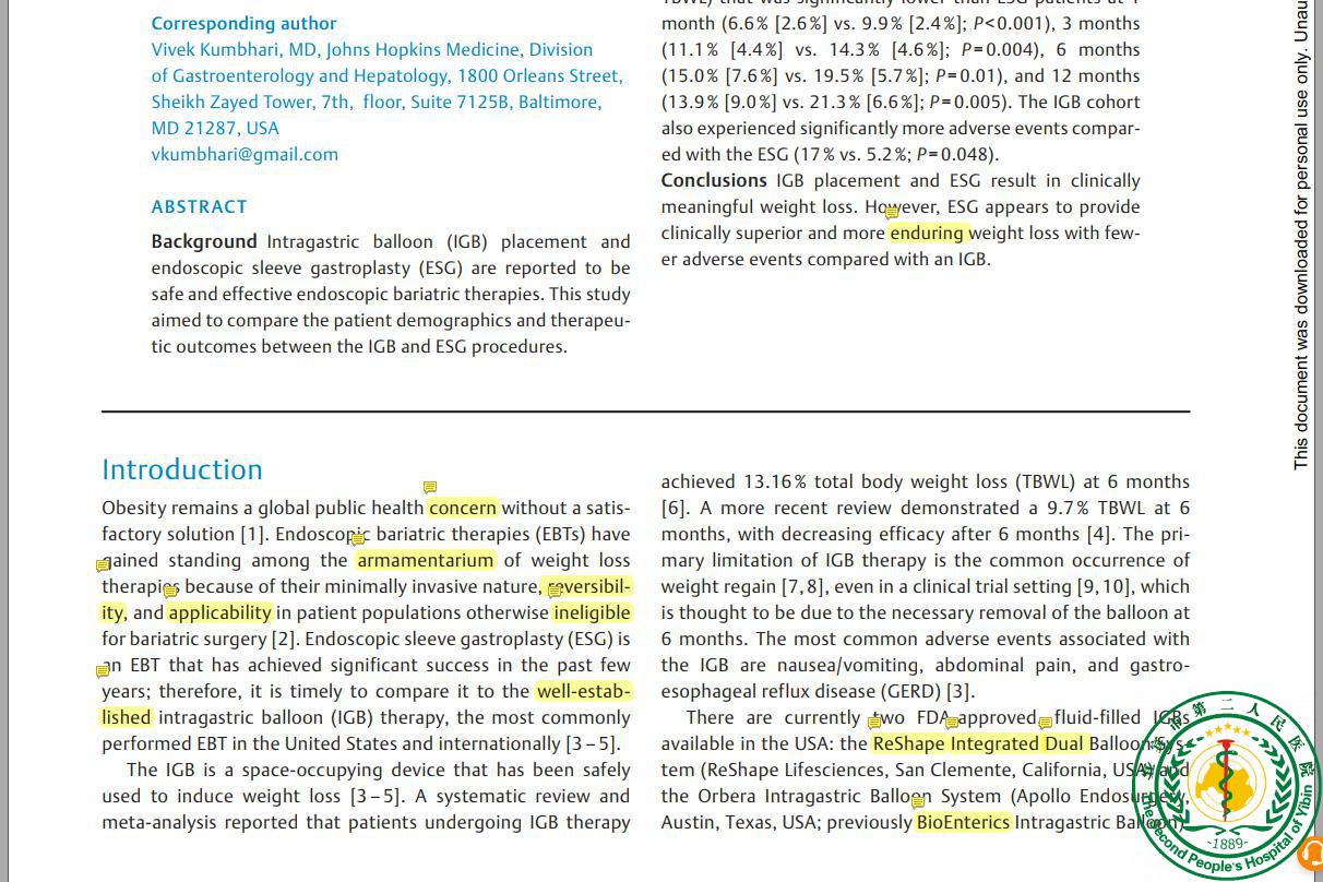 解读内镜下套筒胃成形术与胃内水球放置的有效性,耐久性和安全性54208