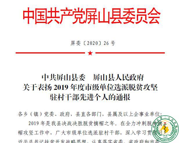 喜讯!何岸同志被评为“2019年度市级单位选派脱贫攻坚驻村干部先进个人”