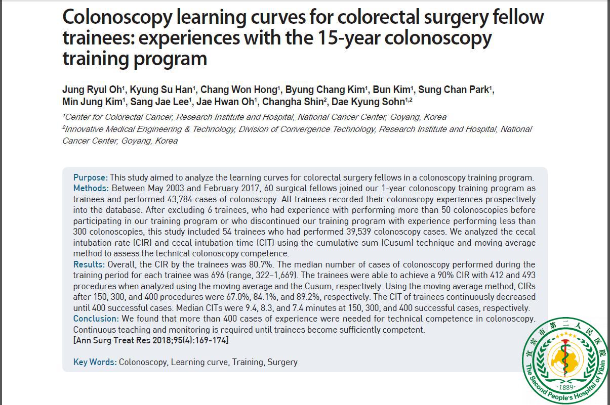 Colonoscopy learning curves for colorectal surgery fellow trainees: experiences with the 15-year colonoscopy training program