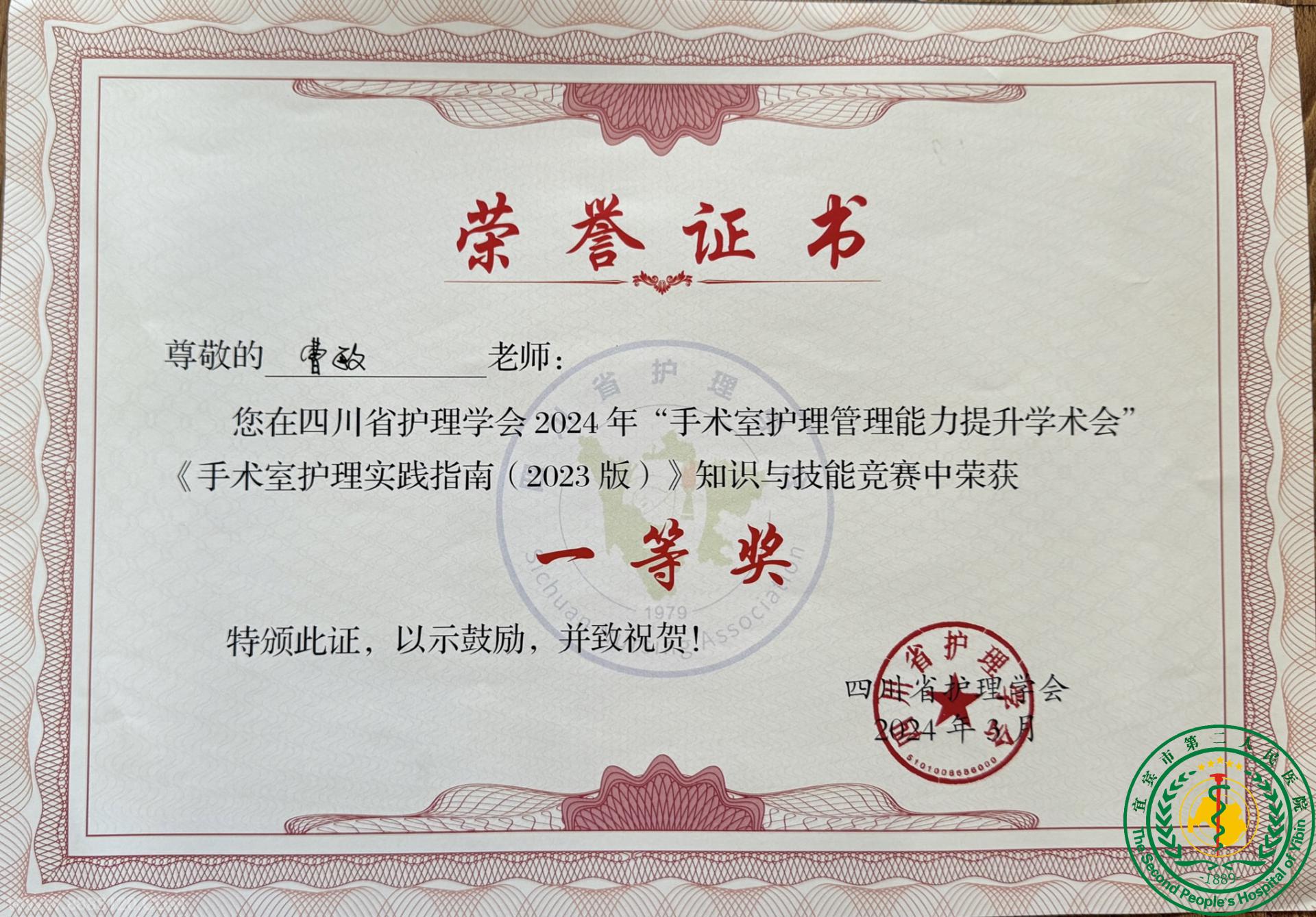 华西宜宾医院组织宜宾市代表队在四川省护理学会《手术室护理实践指南》知识与技能竞赛中荣获一等奖55039
